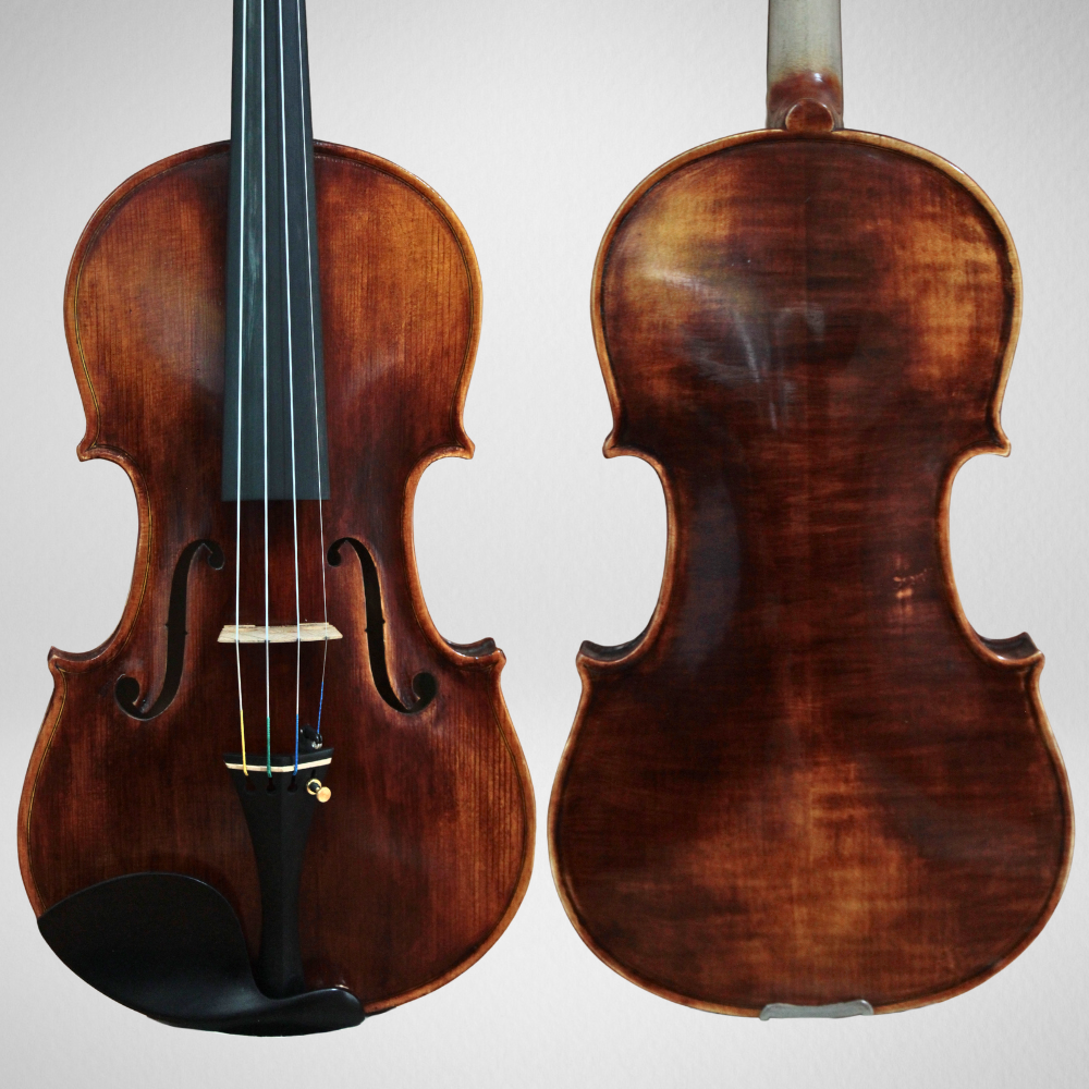 Lindo violino, com excelente construção e finalização realizada no Brasil pelo renomado Atelier dos Violinos. Neste instrumento foi feito um verniz misto à óleo, climatização da madeira e montagem com peças de qualidade tendo um cavalete Teller Germany 3 estrelas envelhecido, alma de abeto alemão envelhecida, colocação de um jogo de encordoamento Thomastik Alphayue, espelho em ébano, acessórios (cravelhas, estandarte, queixeira e botão) em ébano com detalhes dourado. Violino indicado para estudantes intermediários e violinistas de nível intermediários.